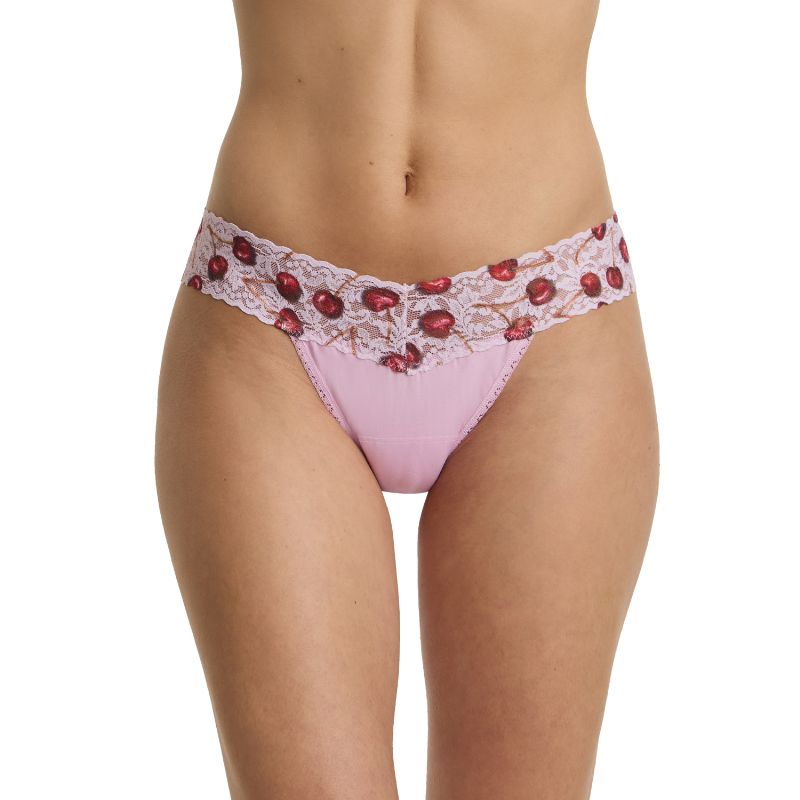 オーガニック コットン ロー ライズ タンガ ウィズ コントラスト トリム (チェリー ディライト)
